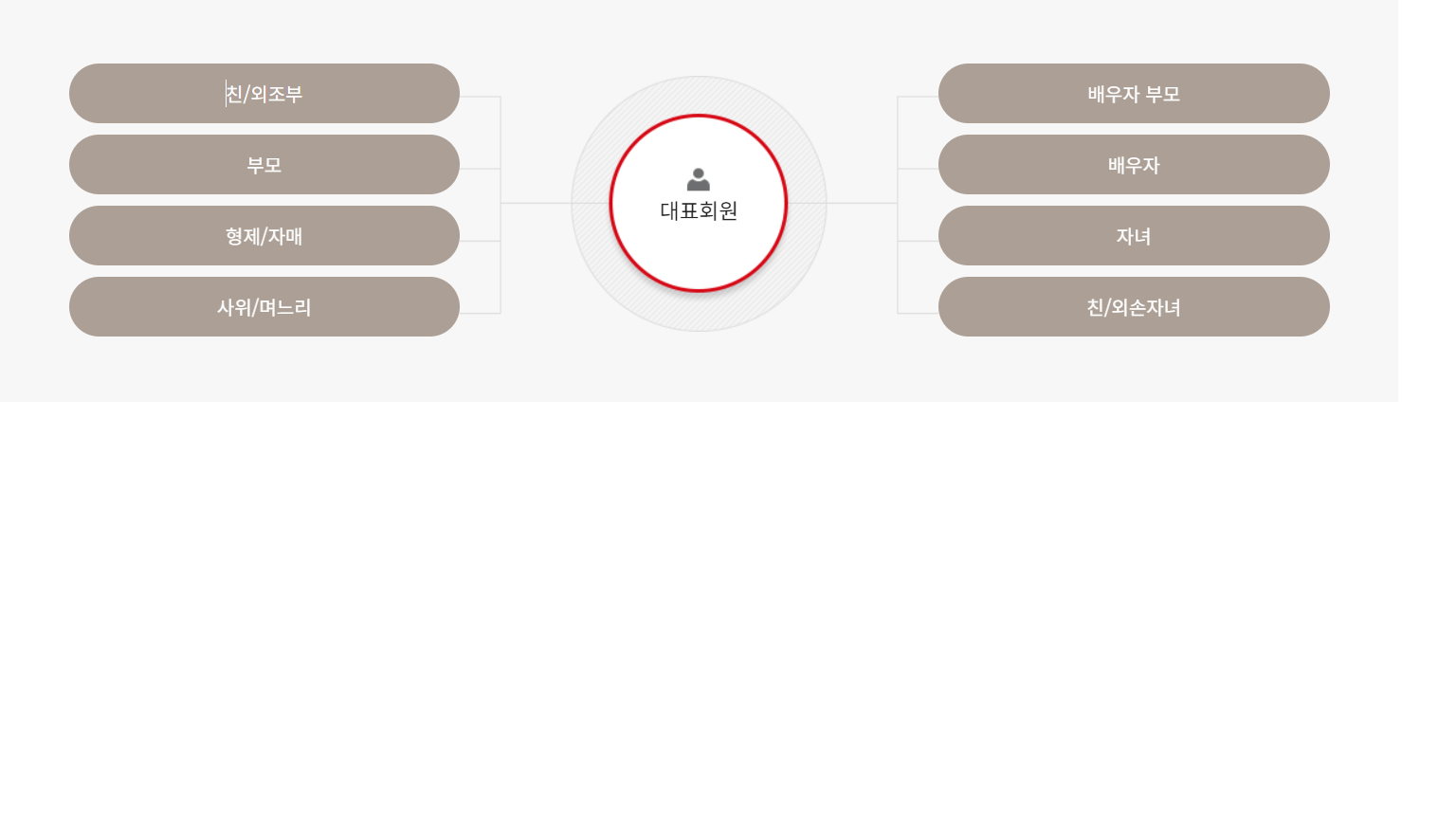 - 가족 대표 회원의 배우자, 부모, 자녀, 형제, 자매, 사위, 며느리, 배우자의 부모, 친/외조부모, 친/외손자녀